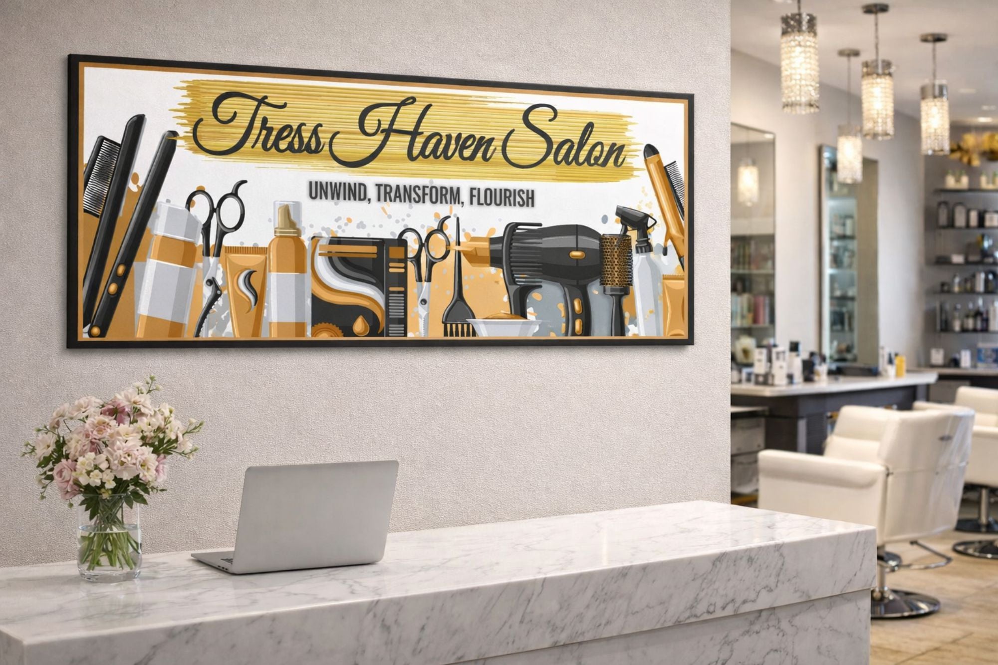 Each sign is printed on premium vehicle-wrap vinyl and mounted on rigid PVC, delivering rich color and exceptional durability. Unlike canvas prints, it won’t sag, crack, or warp, making it ideal for long-term display in professional salon environments.