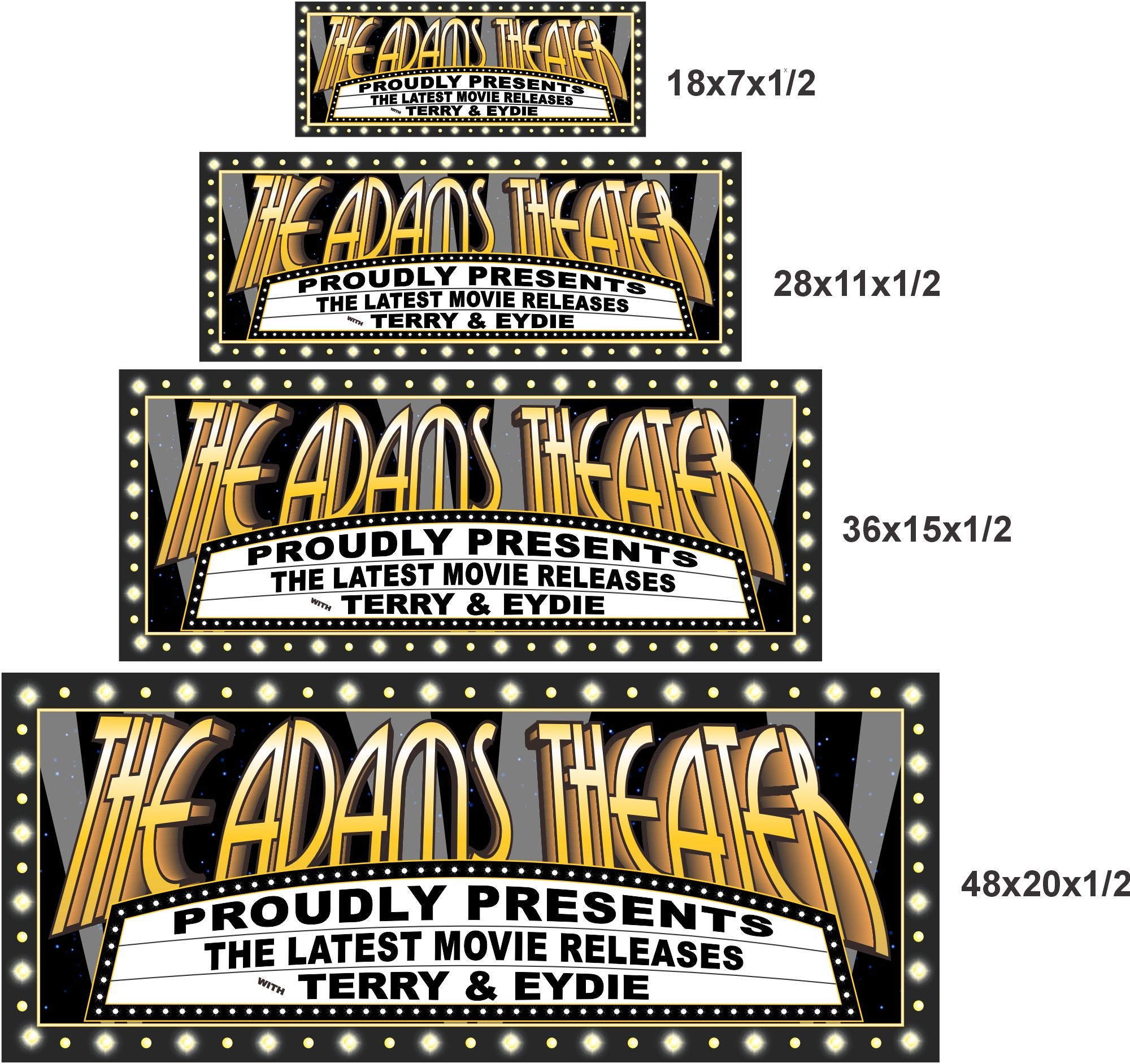 All text on the sign is fully customizable, allowing you to personalize the theater name, message lines, and presentation details to match your space or gifting needs.