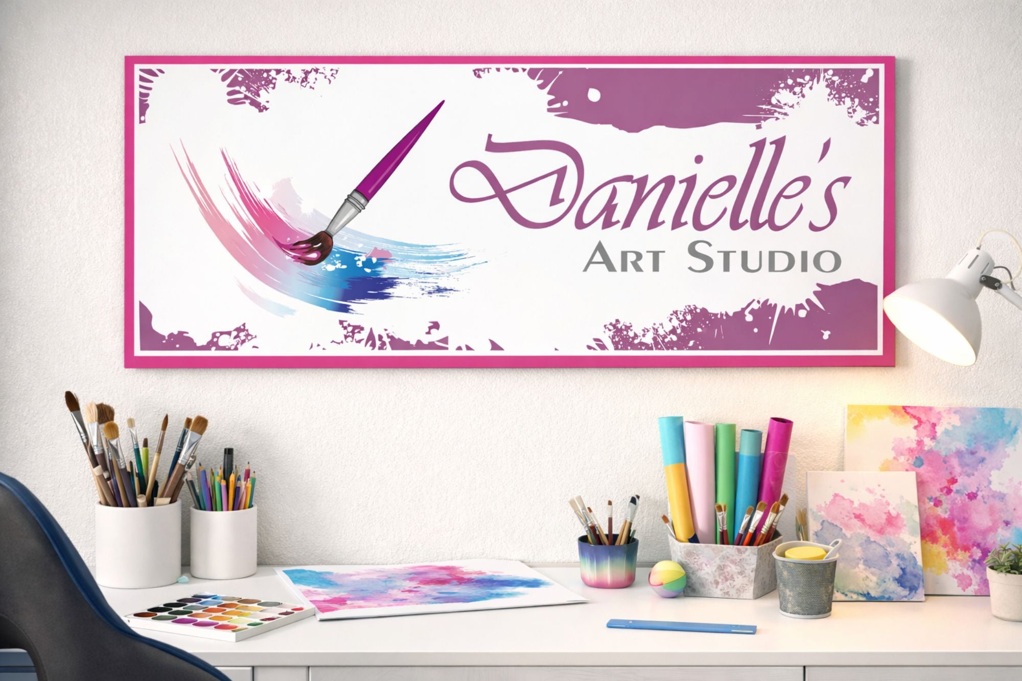 Create an inspiring creative space with this personalized Art Studio sign, designed for artists, painters, and makers of all ages. Every line of text is fully editable, making it perfect for home studios, classrooms, workshops, and small business art spaces. Printed with vibrant, fade-resistant inks on durable vehicle-wrap vinyl and mounted on rigid PVC, this sign delivers long-lasting color and a professional finish.
