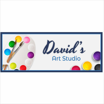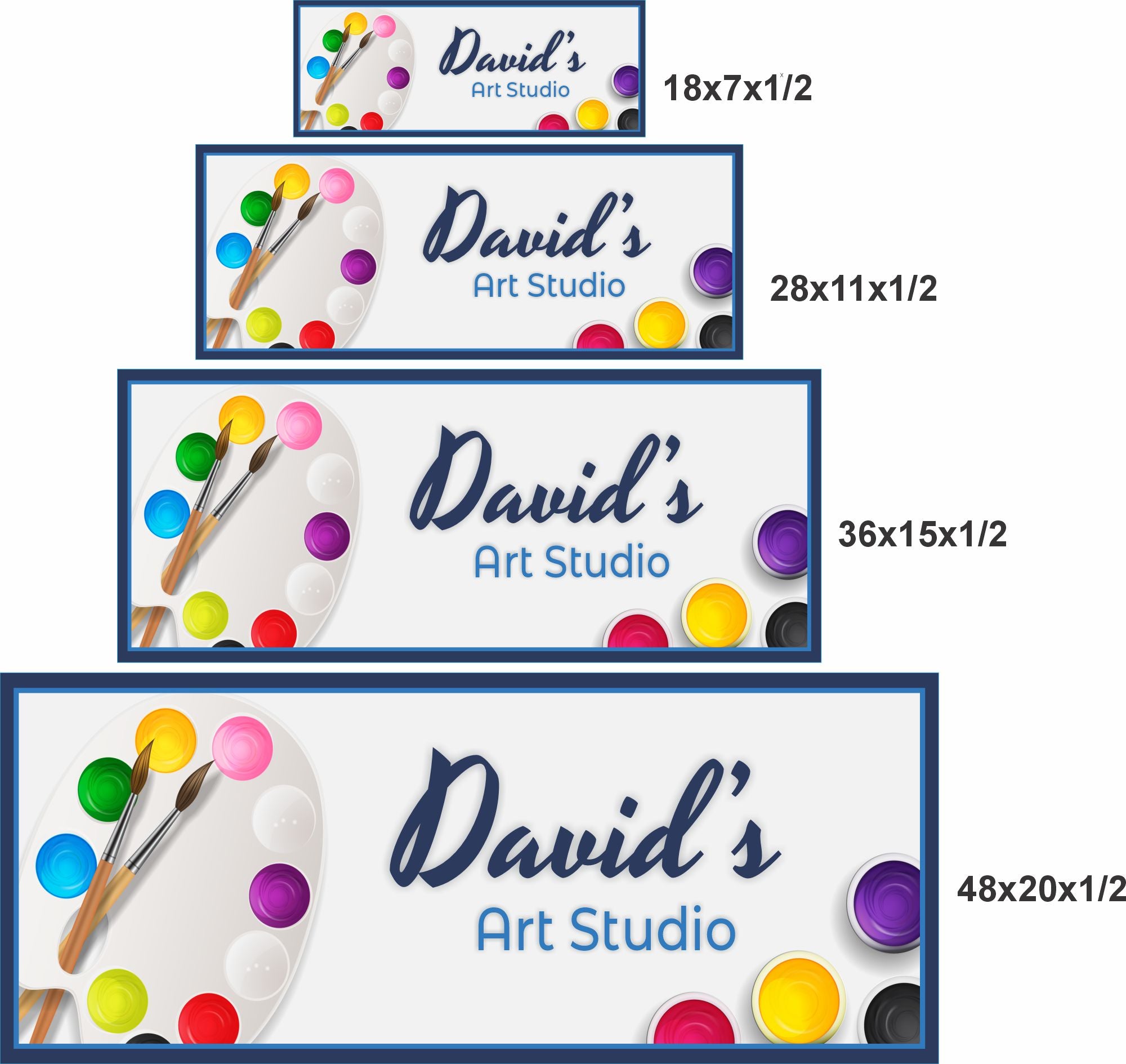 Each sign is custom printed with the name of your choice and features a colorful paint palette design with rich, vibrant tones that stand out beautifully on any wall.