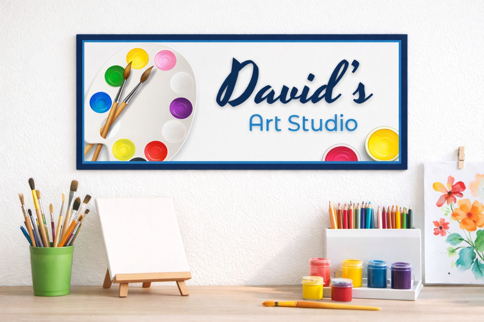 Create an inspiring creative space with this personalized Art Studio sign — perfect for artists, craft rooms, kids’ art corners, classrooms, and hobby studios.