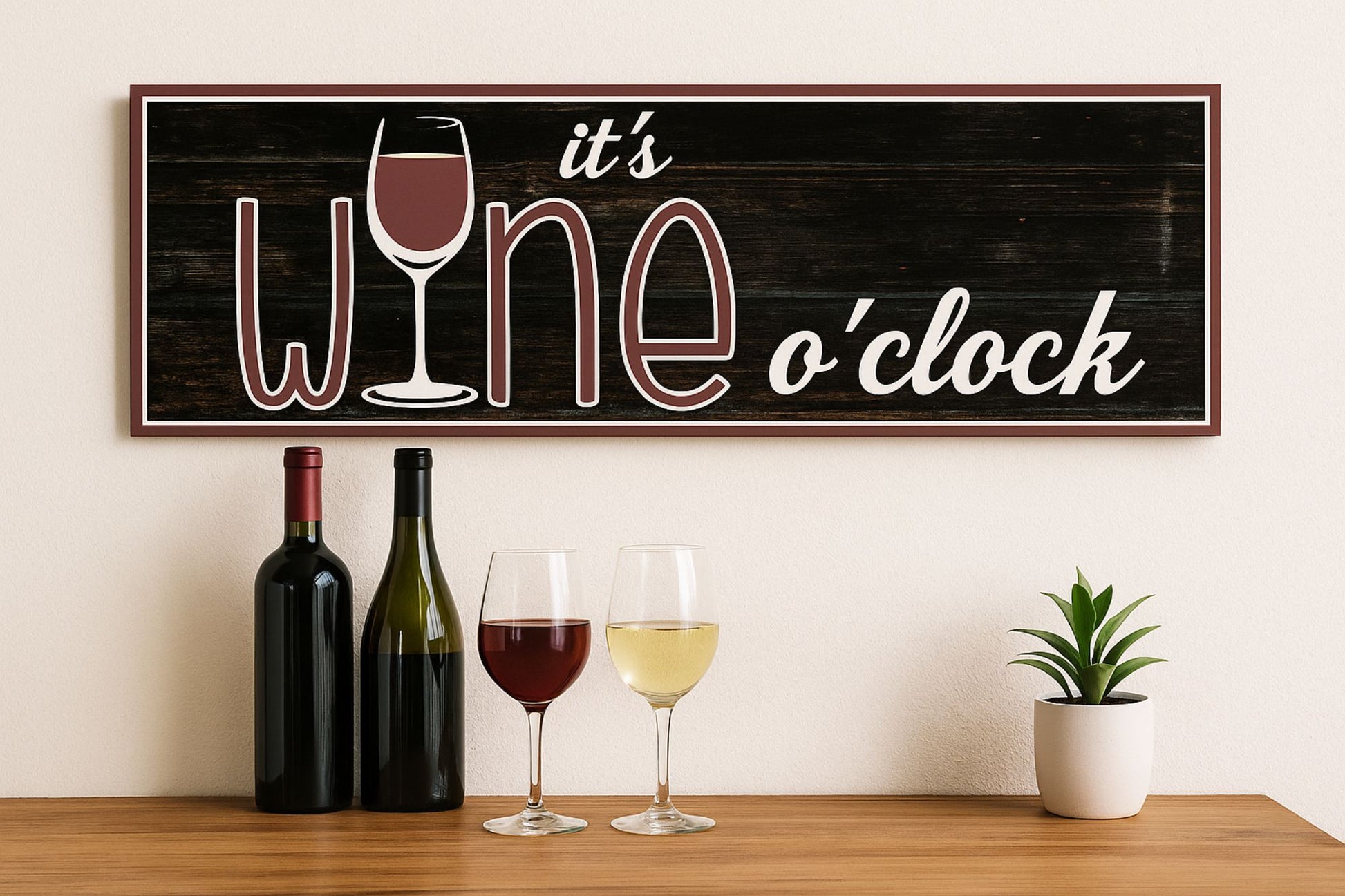Wine O’Clock Wall Sign – Funny Rustic Wine Lover Kitchen Decor