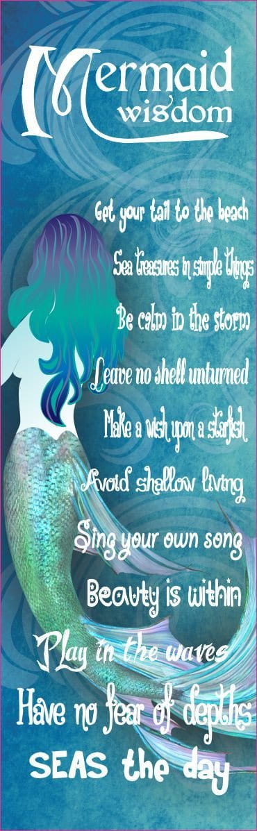 Mermaids have many pearls of wisdom to share with the world. Many of us can find inspiration from their beauty, grace and carefree lifestyle. Our Mermaid Wisdom beach décor includes a long list of inspirational quotes that can teach us how to live every moment to the fullest. Display in your home or give as a special beach gift for fans of fantasy and folklore!