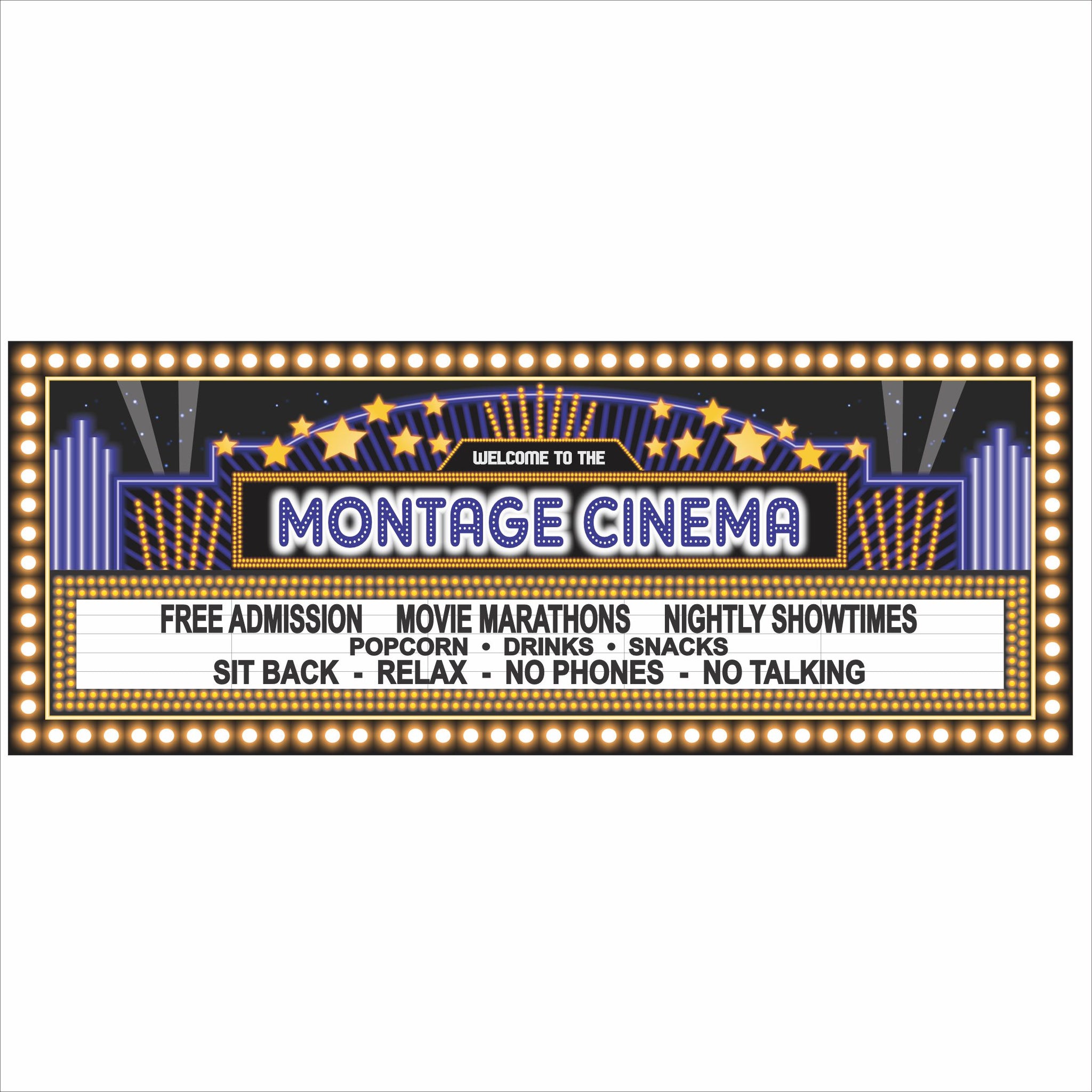 - Classic theater-marquee design with stars, spotlight graphics and customizable cinema name