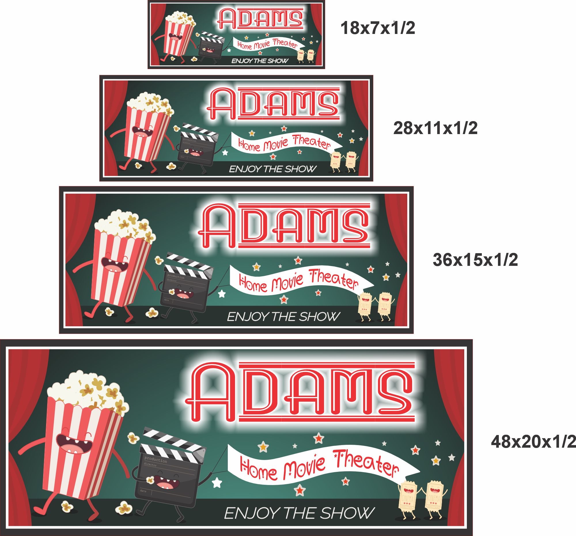 All text is customizable so you can add your family name or theater name, making it a fun and unique addition to your home décor.